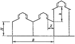 注:當(dāng)Z/h>2.3時(shí),建筑物的相關(guān)尺寸可不受限制。