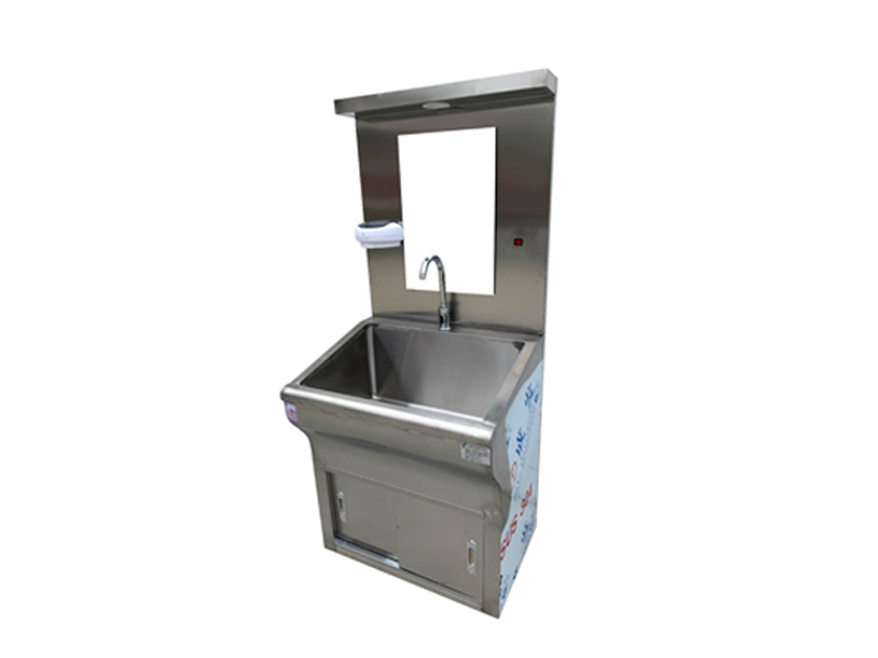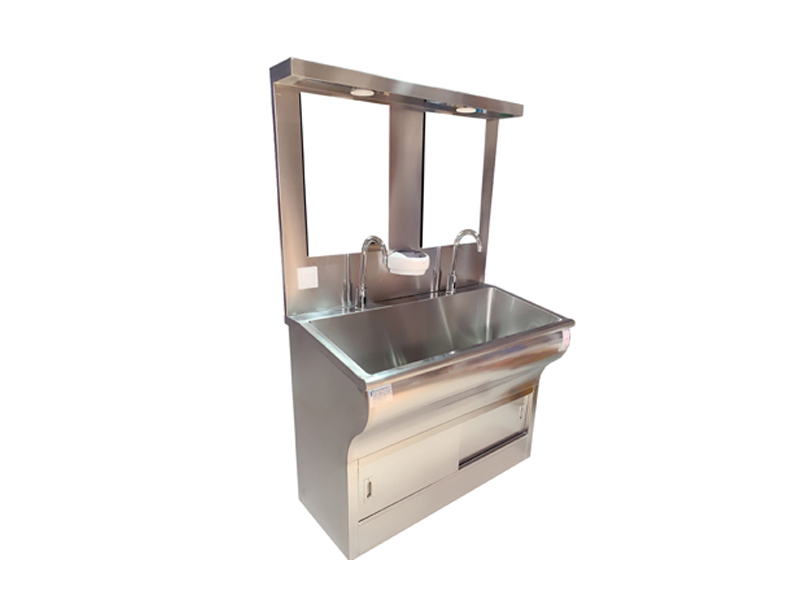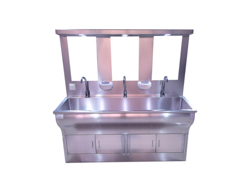不銹鋼潔凈洗手池分為一人位、雙人位、三人位、四人位等,可根據客戶要求定制。無塵室不銹鋼洗手池、洗手槽采用SUS304不銹鋼制作,中間特殊靜音處理。槽身以人體工程學設計洗手時水花不易濺到身上。鵝頸型水龍頭,光控感應式出水,可靠。配紅外線感應給皂液裝置,醫用洗手池可選裝自帶40L美的電熱水器,自由設定出水溫度,一年四季可提供恒溫水,水龍頭感應自動出水,每個洗手位帶獨立鏡燈和鏡子,洗手槽采用特制的坡度設計,可有效防止水濺到洗手池外,各水嘴獨立設置,不影響其它水嘴的使用。